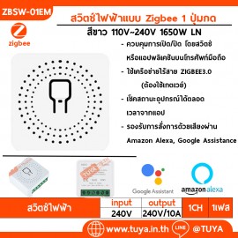 ZBSW01-EM สวิตซ์ไฟแบบกล่อง 1 ช่อง 10A 240V มีปุ่มกดในตัว รองรับสวิตช์สายแยก (Zigbee)