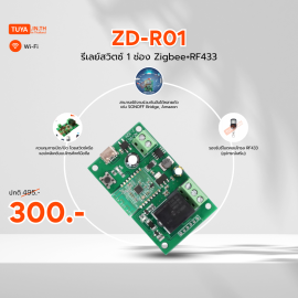 ZD-R01 รีเลย์สวิตซ์ 1ช่อง Zigbee+RF433 250V 10A DC7-32Vคุณสมบัติผลิตภัณฑ์• ควบคุมการเปิด/ปิด โดยสวิตซ์หรือแอปพลิเคชันบนโทรศัพท์มือถือ• ใช้เครือข่ายไร้สาย ZIGBEE3.0 (ต้องใช้เกตเวย์)• มีพอร์ต ควบคุมสั่งการด้วยแอปพลิเคชัน TuyaSmart หรือ SmartLife ผ่านโทรศัพท์มือถือใช้ได้กับระบบปฏิบัติการ iOS และ Android และแชร์การทำงานร่วมกับคนในครอบครัว• เช็คสถานะอุป..