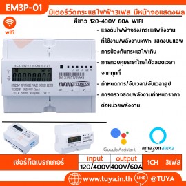 EM3P-01 มิเตอร์วัดกระแสไฟฟ้า3เฟส มีหน้าจอแสดงผล 120-400V 60A WIFI