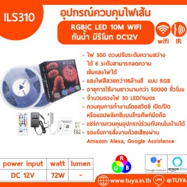 ILS310 อุปกรณ์ควบคุมไฟเส้น LED Strip แบบสี RGB พร้อมเส้นไฟยาว 10 เมตร IR/WIFI DC12V