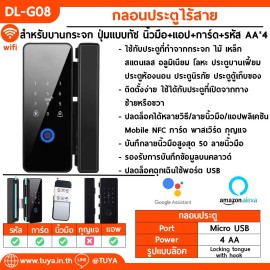 DL-G08 กลอนล็อคประตูกระจกอัฉริยะ ทัชสกีน รหัสผ่าน การ์ด รีโมท สัญญาณบลูทูธ AA*4